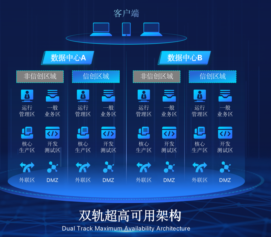 leyu.樂魚在企業(yè)面臨自主創(chuàng)新IT基礎(chǔ)重構(gòu)過程中,推出的全新架構(gòu)雙軌超高可用架構(gòu)(簡稱DTMAA),在雙活數(shù)據(jù)中心的分區(qū)調(diào)度基礎(chǔ)上,添加每個(gè)數(shù)據(jù)中心內(nèi)信創(chuàng)域和非信創(chuàng)域的分域調(diào)度,來實(shí)現(xiàn)分區(qū)分域協(xié)同的多活雙軌超高可用。